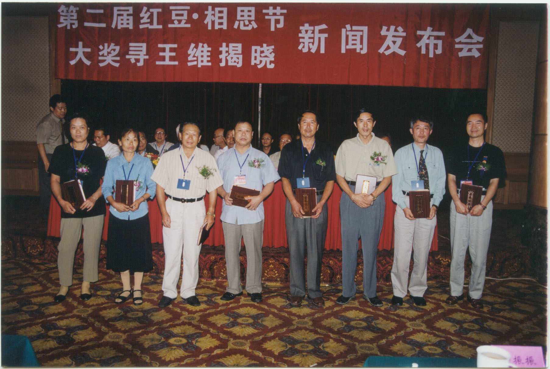 7月15日,“七夕紅豆·相思節(jié)詩詞大賽”歷經三個半月截稿,據(jù)統(tǒng)計此次大賽共收到美、英、日、法、加拿大、新西蘭、泰國等十幾個國家和兩岸三地參賽稿件108000多篇,參賽者達到了31000多人。7月24日,臺灣著名詩人余光中欣然作《紅豆》詩一首,并電傳到紅豆集團。7月25日,大賽組委會把進入復評的隱名稿件送往北京,由大賽評委會進行復評、終評。7月30日,大賽評委會經過反復評審、打分后,評出所有“七夕紅豆·相思節(jié)詩詞大賽”獲獎作品。 8月14日,“七夕紅豆·相思節(jié)詩詞大賽”(20萬大獎尋當代王維)揭曉新聞發(fā)布會在無錫錦江大酒店舉行,來自北京的詩人劉征以一首古風《紅豆曲》摘取了桂冠。紅豆集團董事局主席周耀庭、著名詩人賀敬之、孫軼青、全國政協(xié)委員顧蔚慶等參加了這次發(fā)布會,并給獲獎者頒發(fā)了獲獎證書與獎金。