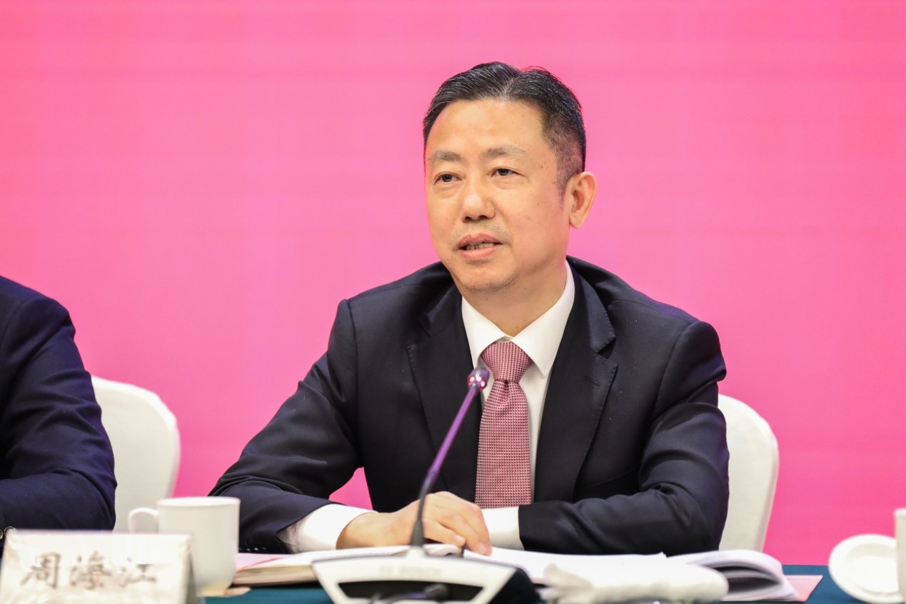 區(qū)企業(yè)家協(xié)會會長周海江在發(fā)言中,深度剖析了當(dāng)前國內(nèi)外形勢,并結(jié)合紅豆抗擊疫情、化危為機(jī)的發(fā)展經(jīng)驗(yàn),同與會企業(yè)家進(jìn)行了交流分享。