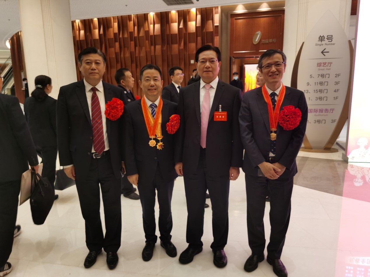 無錫市委書記黃欽(左三)帶領無錫市3名國家級榮譽代表,參加江蘇省新冠肺炎疫情表彰大會,從左至右分別為:“全國抗擊新冠肺炎疫情先進集體”獲得者,無錫市第五人民醫(yī)院黨委書記、院長魯曉杰(左一);“全國抗擊新冠肺炎疫情先進個人”“全國優(yōu)秀共產黨員”兩項榮譽獲得者,紅豆集團黨委書記周海江(左二);“全國抗擊新冠肺炎疫情先進個人”獲得者,無錫市人民醫(yī)院副院長、胸外科主任、主任醫(yī)師陳靜瑜(右一)。