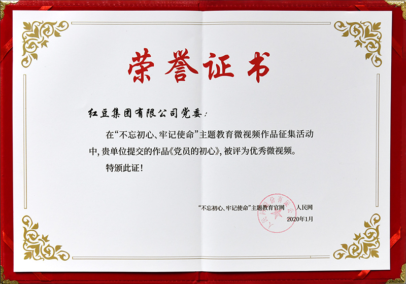 紅豆集團(tuán)參評的《黨員的初心》,經(jīng)過專家評選,網(wǎng)絡(luò)投票,從全國4000多件作品中脫穎而出,被評為50個(gè)“優(yōu)秀微視頻”作品之一,紅豆集團(tuán)也是全國唯一一家民營企業(yè)獲得此項(xiàng)殊榮。
