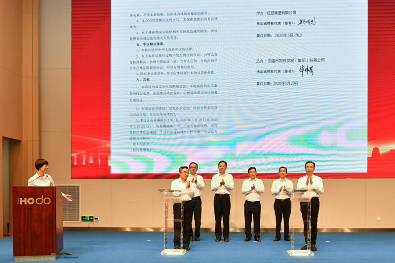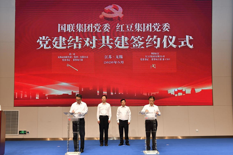 5月29日,紅豆集團(tuán)有限公司與無(wú)錫市國(guó)聯(lián)發(fā)展(集團(tuán))有限公司在紅豆錫東財(cái)富廣場(chǎng)舉行了黨建結(jié)對(duì)共建暨戰(zhàn)略合作簽約儀式,共同探索新時(shí)期黨建工作新思路、新路徑、新方法,攜手為無(wú)錫爭(zhēng)當(dāng)全省高質(zhì)量發(fā)展領(lǐng)跑者注入更多活力。中共無(wú)錫市委常委、組織部部長(zhǎng)馮軍,中共無(wú)錫市錫山區(qū)委書(shū)記顧中明,國(guó)聯(lián)集團(tuán)黨委書(shū)記、董事局主席許可,國(guó)聯(lián)集團(tuán)黨委副書(shū)記、總裁華偉榮,紅豆集團(tuán)黨委書(shū)記、董事局主席兼CEO周海江,中共無(wú)錫市錫山區(qū)委常委、組織部部長(zhǎng)竇虹等出席活動(dòng)。