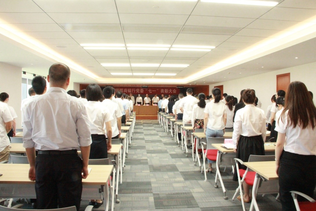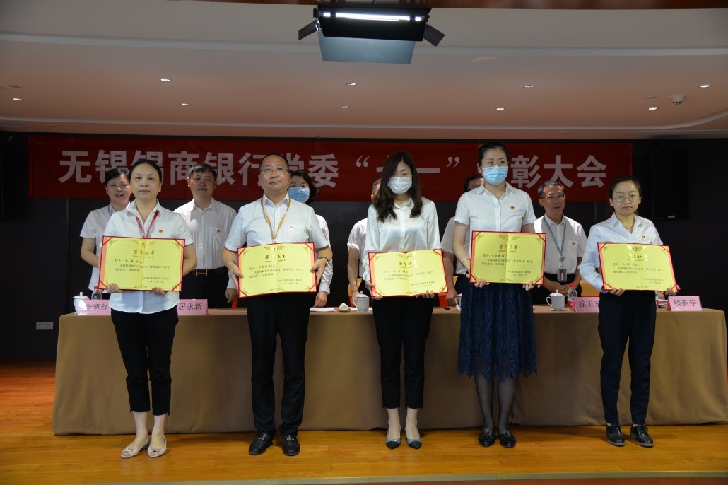 在建黨99周年到來之際,為激勵和引導(dǎo)全體黨員進一步貫徹落實習近平新時代中國特色社會主義思想和黨的十九大及十九屆二中、三中、四中全會精神,表彰在打好疫情防控阻擊戰(zhàn)、推動錫商銀行籌建開業(yè)、推動紅豆高質(zhì)高效發(fā)展中涌現(xiàn)的先進典型,無錫錫商銀行黨委于6月30日上午隆重召開了慶祝中國共產(chǎn)黨成立99周年暨迎“七一”表彰大會。大會由黨委副書記、錫商銀行行長奚國光同志主持,黨委班子成員和各支部(總支)全體黨員出席會議。