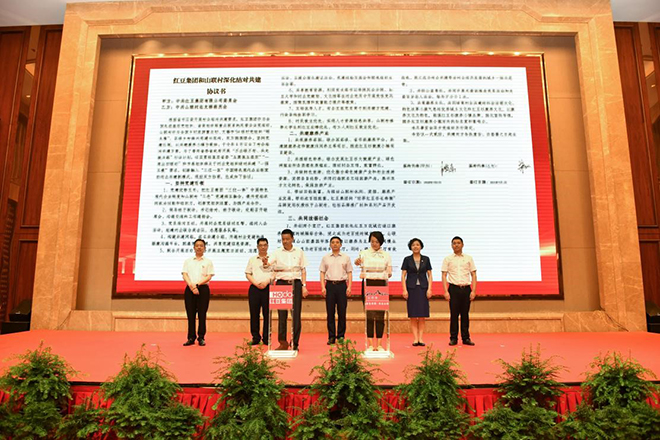 村企聯(lián)姻一家親,攜手共進(jìn)助振興。 7月1日下午,紅豆集團(tuán)、山聯(lián)村“黨建引領(lǐng)共走振興路”“七一”主題黨日活動(dòng)在紅豆杉莊舉行?;顒?dòng)上,紅豆集團(tuán)與山聯(lián)村深化結(jié)對(duì)共建正式簽約;為推動(dòng)山聯(lián)村休閑、度假、康養(yǎng)產(chǎn)業(yè)發(fā)展,帶動(dòng)百姓致富,紅豆集團(tuán)還將“世界紅豆杉長(zhǎng)壽鎮(zhèn)”品牌使用權(quán)授予山聯(lián)村。